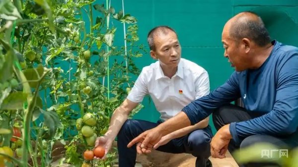 邮储银行总行派驻武山县的定点帮扶干部、挂职副县长麦国泉在黑池殿村调研新式冬暖大棚情况(央广网发 邮储银行甘肃省分行供图)