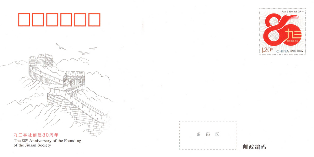 《九三学社创建80周年》纪念邮资信封 -九游会亚洲